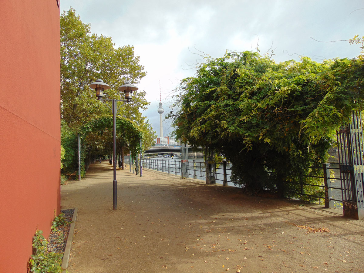 De ochtend van 5 oktober heb ik gebruik voor een wandeling langs de Spree. Dit is de rivier die door Berlijn heenloopt. Ik wilde aanvankelijk het Holocaust-Monument in Berlijn bezoeken en dan in het bijzonder de tentoonstellingsruimte. Het kost altijd behoorlijk wat tijd om deze tentoonstellingsruimte in te komen omdat er maar een bepaald aantal mensen in kunnen. Ook deze ochtend was het helaas te druk en ben ik maar doorgelopen.