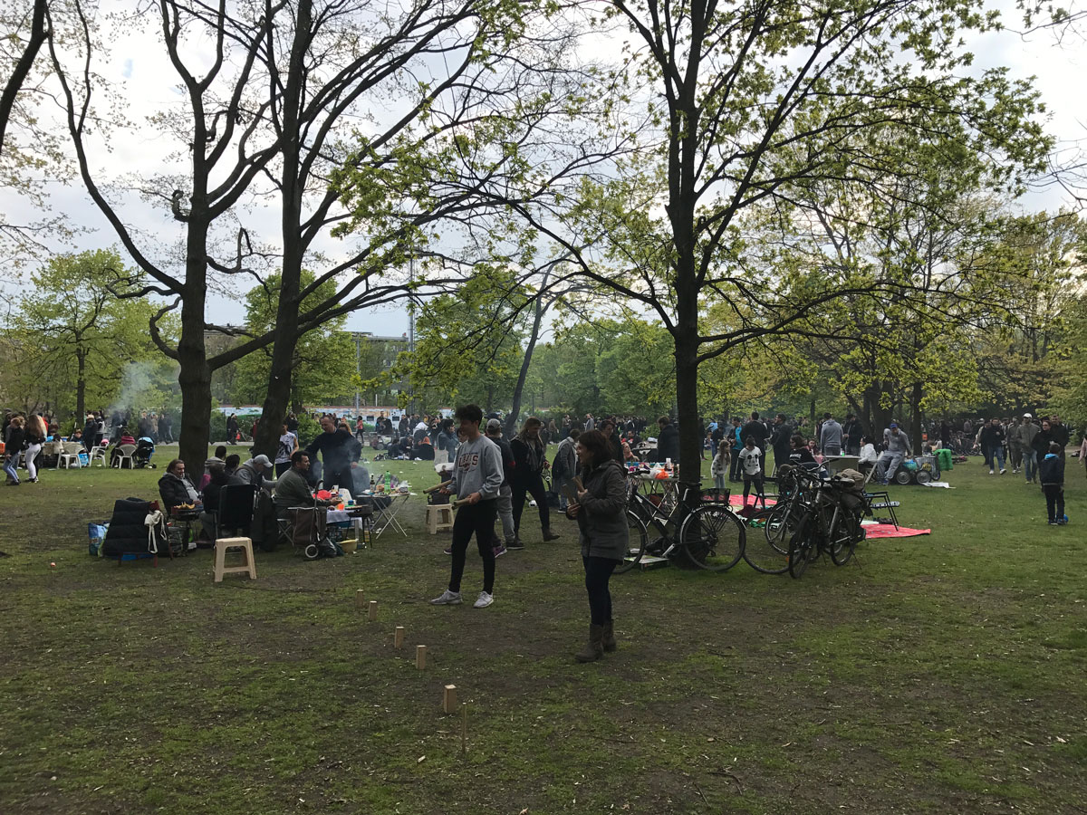 Het Görlitzer Park is een langgerekt park. De meeste drukte was er dan ook in het deel dat grenst aan de wijk Kreuzberg. Verder het park in, in de richting van het "Landwehr kanaal" werd het allemaal wat rustiger.