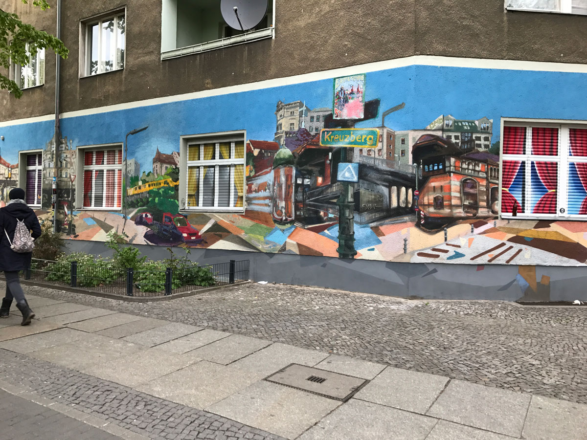 Vanwege de grote drukte in dit deel van Berlijn stoppen S- en U-Bahn bij bepaalde stations niet. De normale bussen rijden natuurlijk helemaal niet omdat een flink aantal straten zijn afgesloten. Daarom ben ik aan het eind van de middag dan ook weer richting de wijk Kreuzberg teruggelopen. In de wijk is veel graffiti aanwezig. Hieronder is zo'n tekening te zien, maar er is ook gewoon heel veel graffiti te zien, die er vooral vies en vuil uitziet.