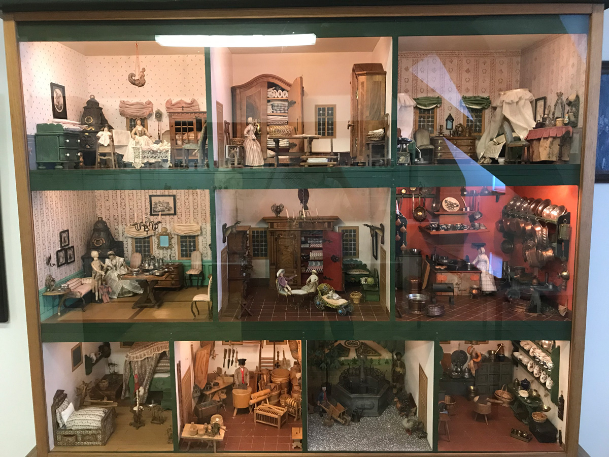 Hieronder een poppenhuis uit de 18de/19de eeuw. Deze poppenhuizen werden meestal niet gebruikt om mee te spelen maar om meisjes te leren hoe ze later een goede huisvrouw zouden worden.