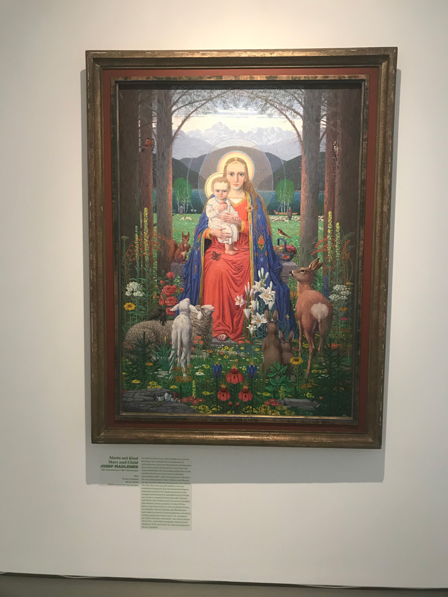 Hier een foto met het schilderij Maria met Kind van Josef Madlener uit 1954. Naast schilder was hij ook actief als dichter en illustrator.