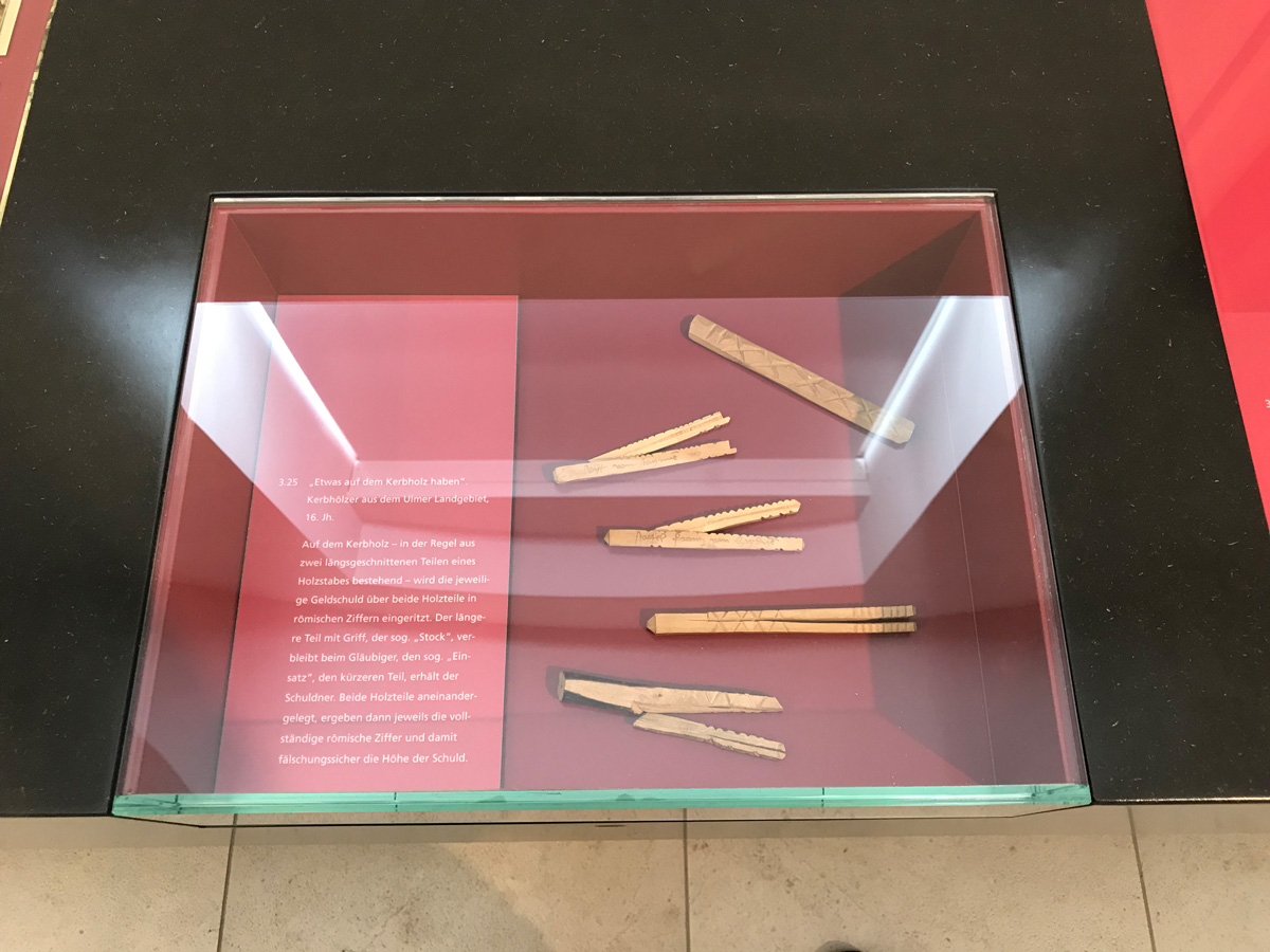 In het museum zijn een aantal oude kerfstokken te zien. De kerfstok bestaat uit een tweetal delen. Een deel gaat naar de persoon die geld geleend heeft. Het andere deel naar de persoon die het geld heeft uitgeleend. Als de beide delen tegen elkaar gehouden worden kan bepaald worden wat de schuld nog is. Hier komt de uitdrukking "iets op je kerfstok hebben" vandaan.