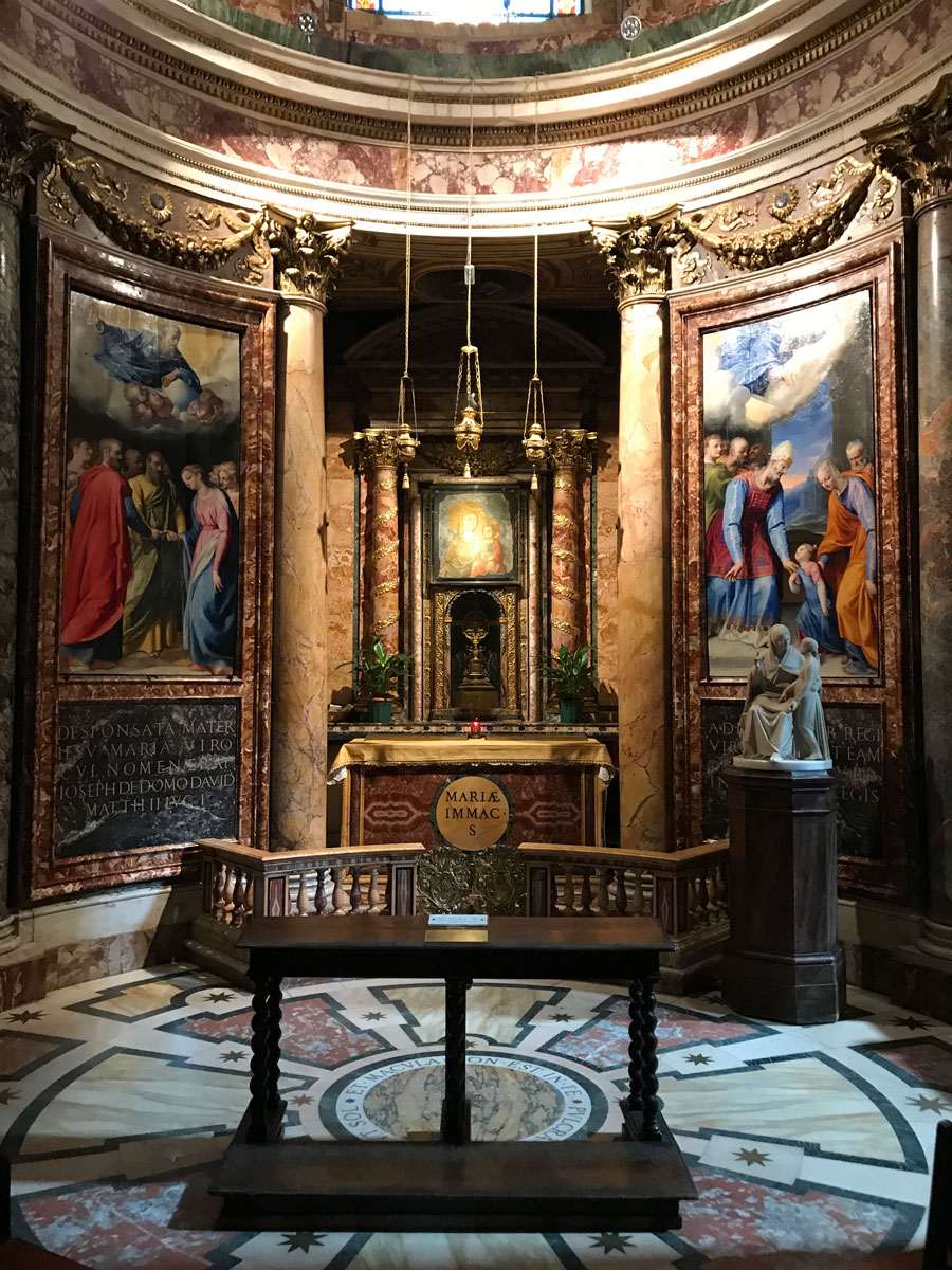 In deze kerk bevindt zich ook het originele schilderij van Madonna Della Strada. Dit fresco is in de 13de en 14de eeuw geschilderd op de muur van een andere kerk in Rome. Bij de bouw van deze kerk is het fresco hier naar toe verhuisd en hangt nu in een aparte kapel.