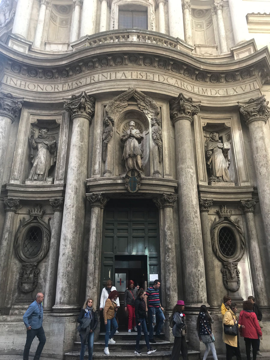 Vlak in de buurt van deze beelden staat de San Carlo Alle Quattro Fontane. Dit is een kleine kerk die ontworpen is door Francesco Borromini. Bij de kerk hoort ook een klooster van de Trinitariërs. Dit is een kloosterorde die zich tegenwoordig vooral bezig houdt met zielzorg en ziekenzorg.