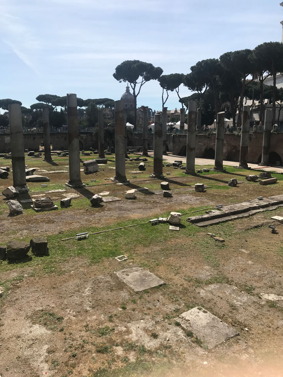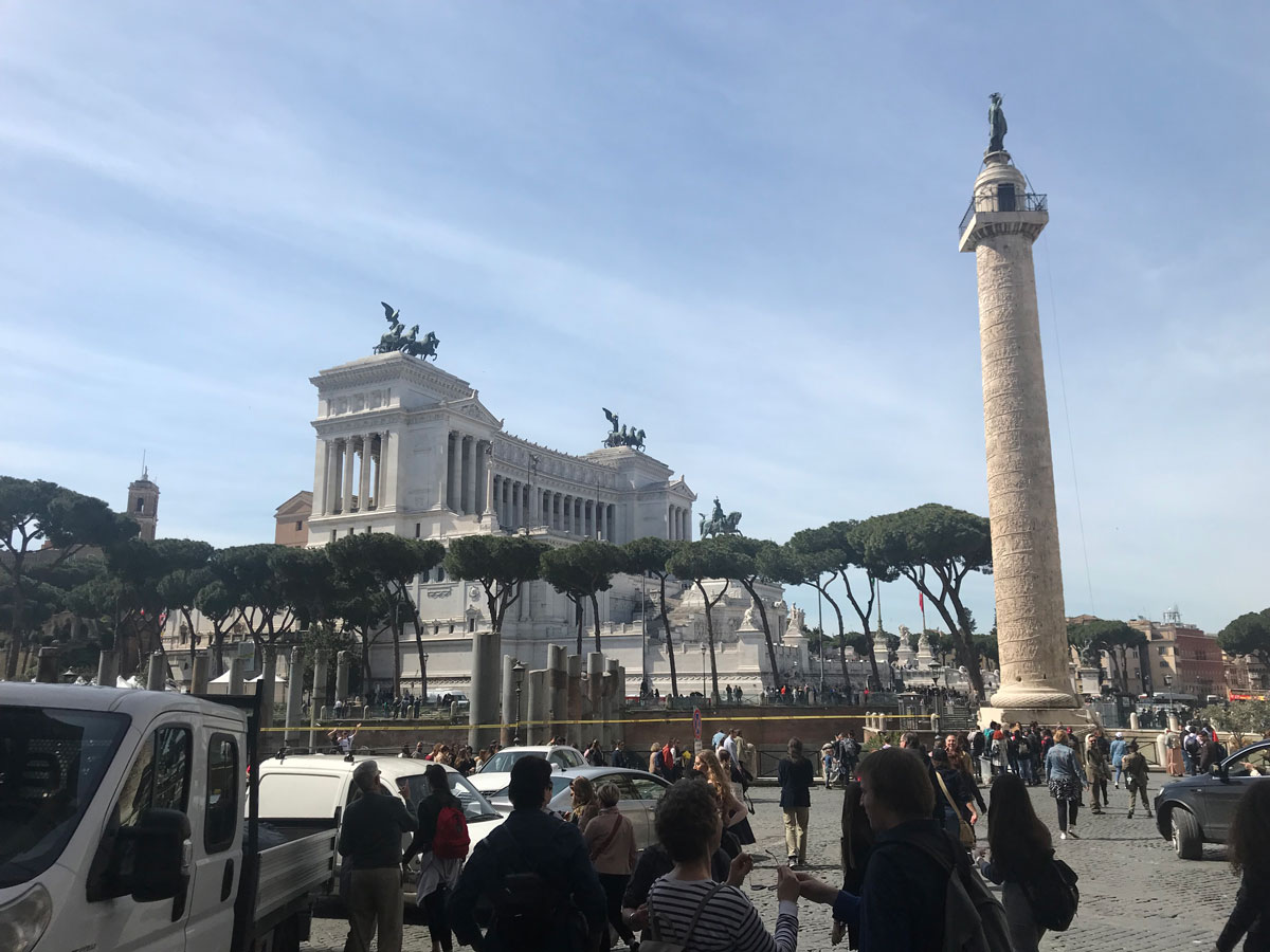 De volgende foto laat rechts de “Zuil van Trajanus” zien. Deze is een onderdeel van het Forum van Trajanus dat zich weer in de buurt van het Forum Romanum bevindt. De zuil is oorspronkelijk bedoelt als een grafmonument voor de as van keizer Trajanus. Nu is het een zuil die de overwinning van Trajanus op het opstandige Dacië in Roemenië tijdens de Dacische Oorlogen herdenkt.