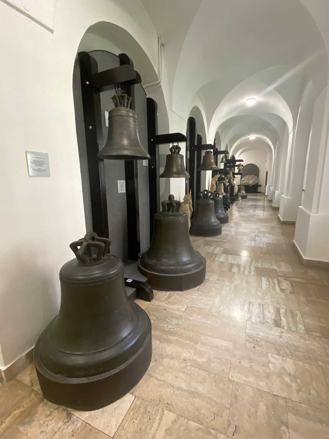 Het museum van West-Slowakije dat zich bevindt in Trnava is een uitgebreid museum dat een goed beeld geeft van de geschiedenis van de stad en de bijbehorende omgeving. In het vorige deel van dit reisverslag heb ik al allerlei foto’s laten zien waaronder de verzameling religieuze kunst die in dit museum te bezichtigen is. Als je uit deze ruimtes komt, dan zie je vervolgens een gang waarin een flink aantal zeer grote klokken zijn opgesteld.