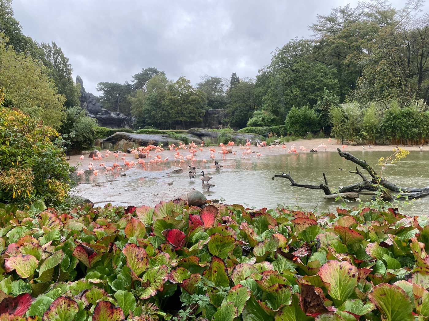 Het weer werd er niet beter op en daarna zijn we maar snel doorgelopen langs de vijver waar de flamingo’s leefden.