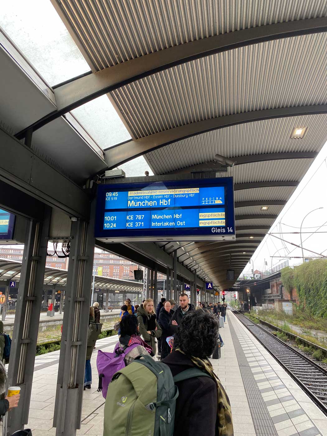 Op zaterdag zijn we rond kwart voor tien van het Centraal Station van Hamburg met de ICE vertrokken naar Duisburg. Op de terugreis hadden we exact dezelfde route als op de heenreis. Het eerste deel van de reis ging voorspoedig en we kwamen op tijd aan op het station in Duisburg.
