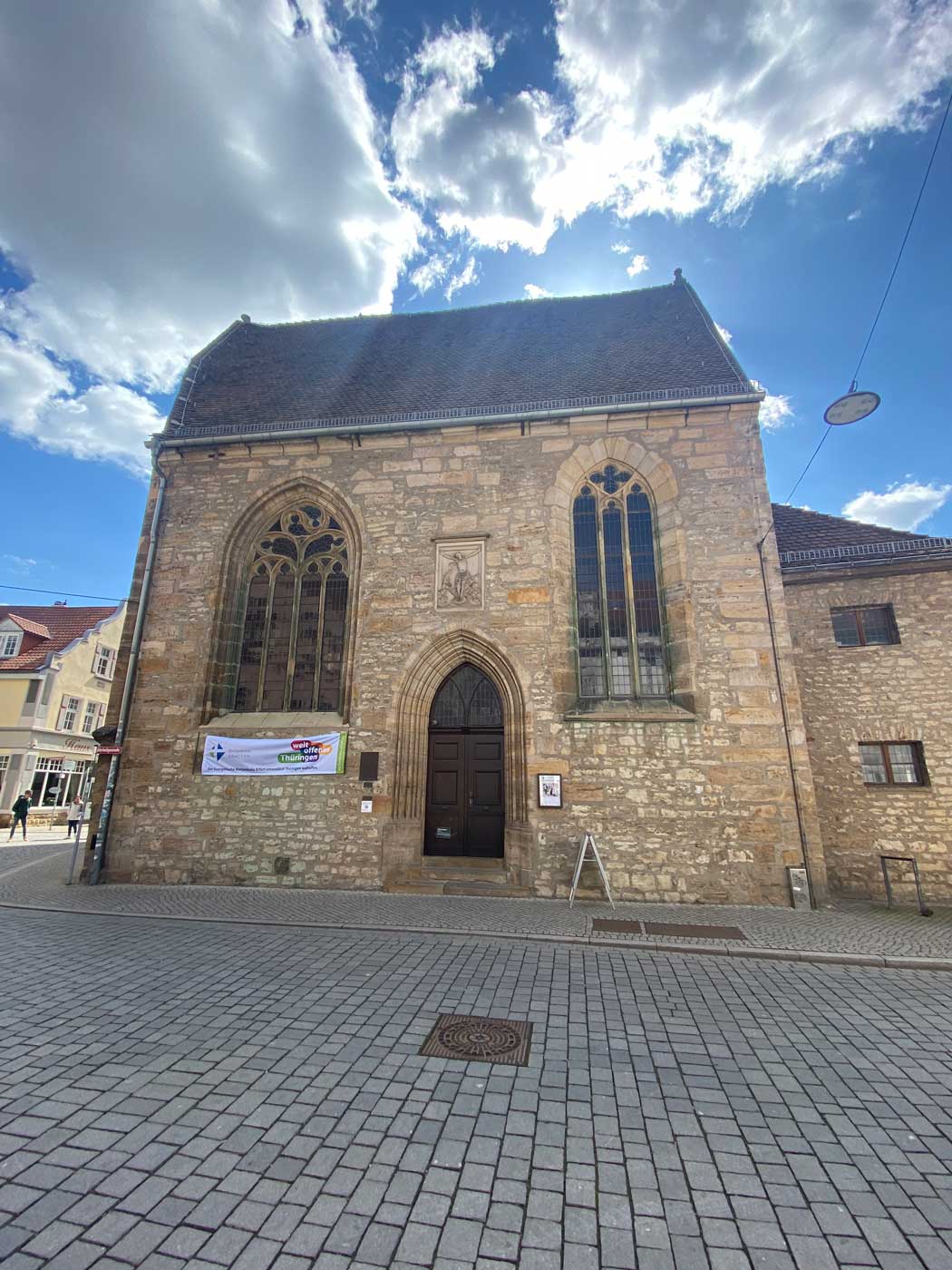 Vanaf de oude synagoge ben ik verder gelopen in de richting van de Michaeliskerk. Op deze plek staat vanaf 1183 een kerk. Sinds 1392 is het de universiteitskerk van universiteit van de stad. Martin Luther bezocht de kerk regelmatig tijdens zijn studie in Erfurt en heeft er in 1522 ook gepredikt. Na de sluiting van de universiteit in 1816 werd de kerk een normale kerk. Nadat de universiteit van Erfurt in 1994 opnieuw is opgericht is de kerk sinds 2007 opnieuw een universiteitskerk.