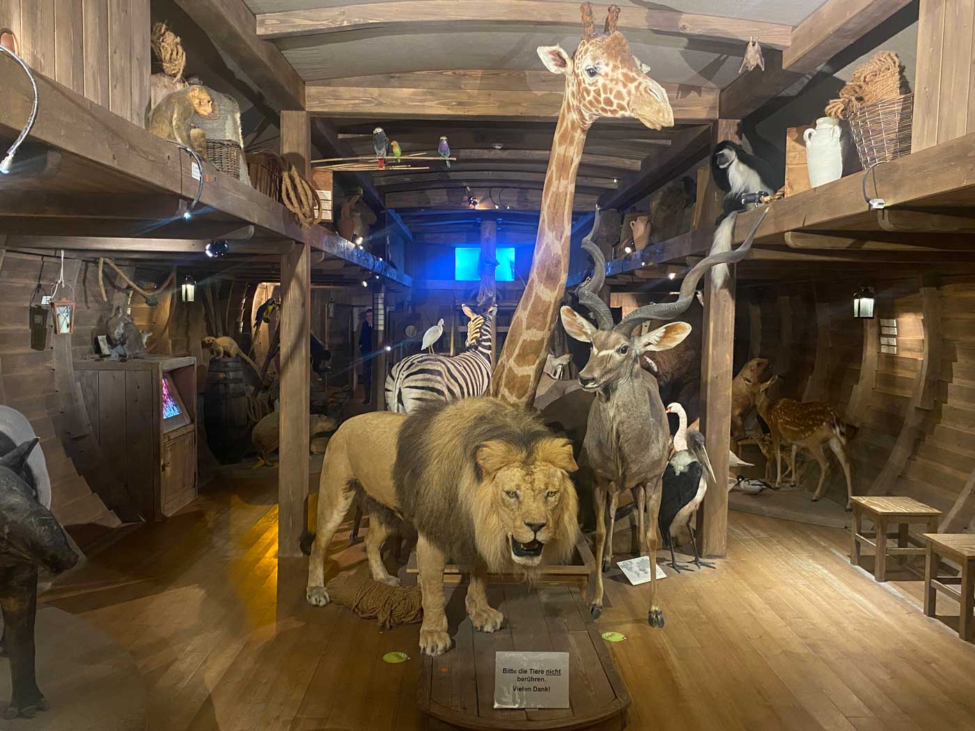 Op de begane grond van het museum start de tentoonstelling met een nagebouwde Ark van Noach waarin een groot aantal dieren te zien zijn.