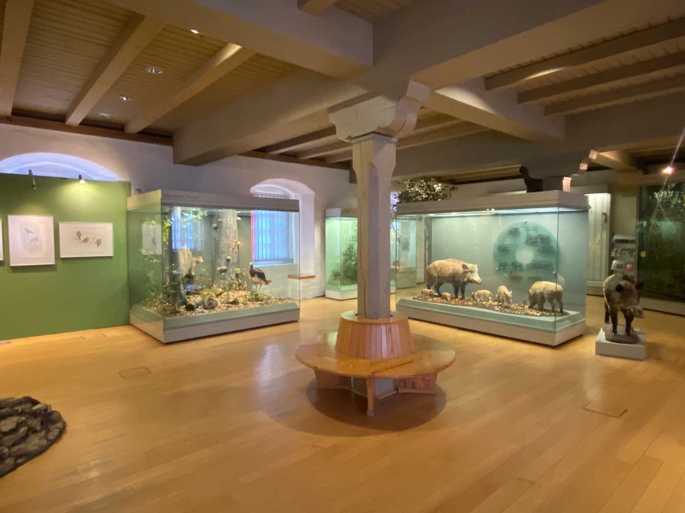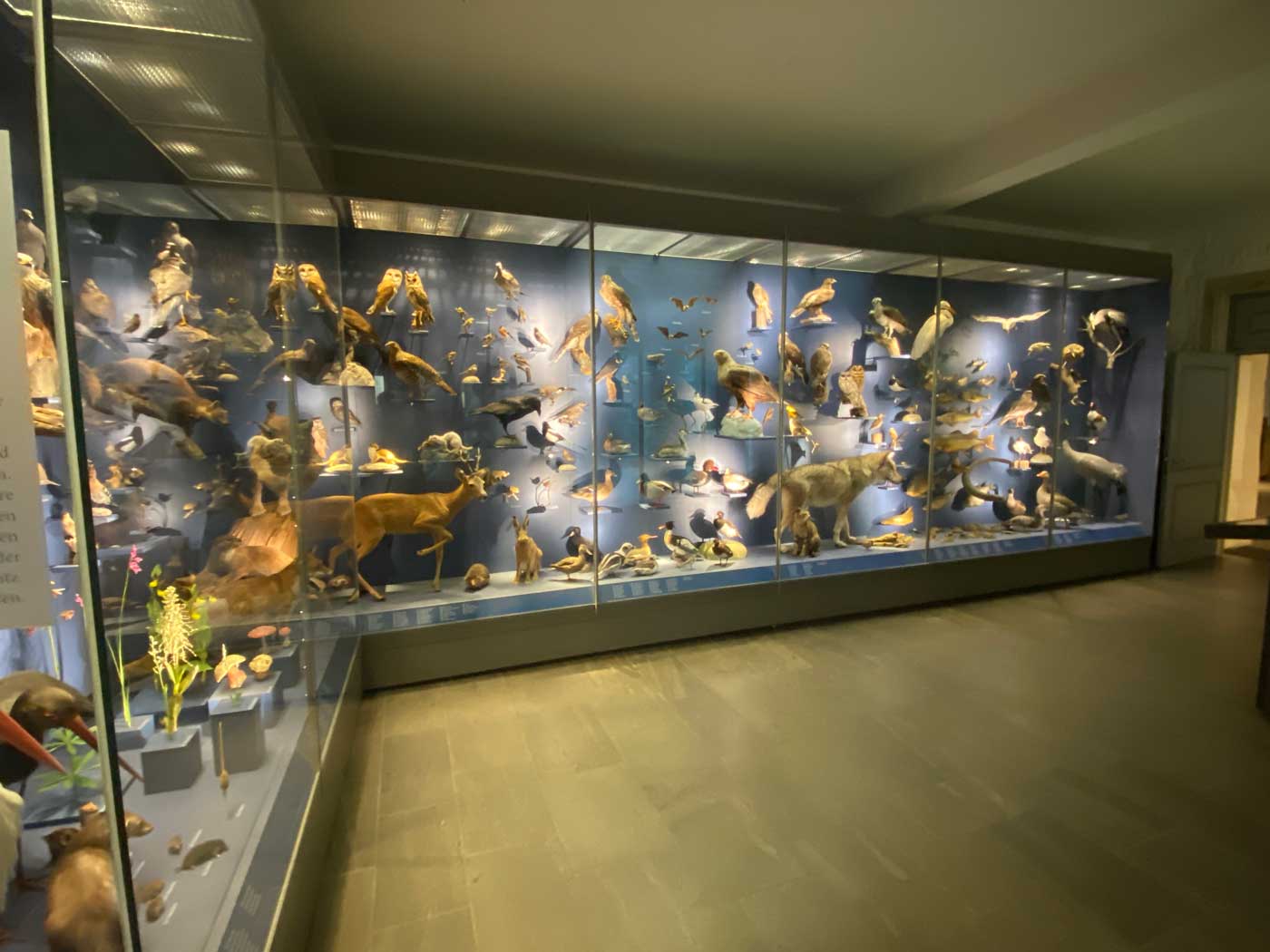 Zoals op de volgende foto te zien is, is in dit museum veel ruimte in gebruik om allerlei dieren te laten zien die in de omgeving voorkomen of in het verleden voorkwamen. Deze staan in glazen kasten waar soms ook een klein deel van de natuurlijk omgeving van deze dieren is nagebouwd.