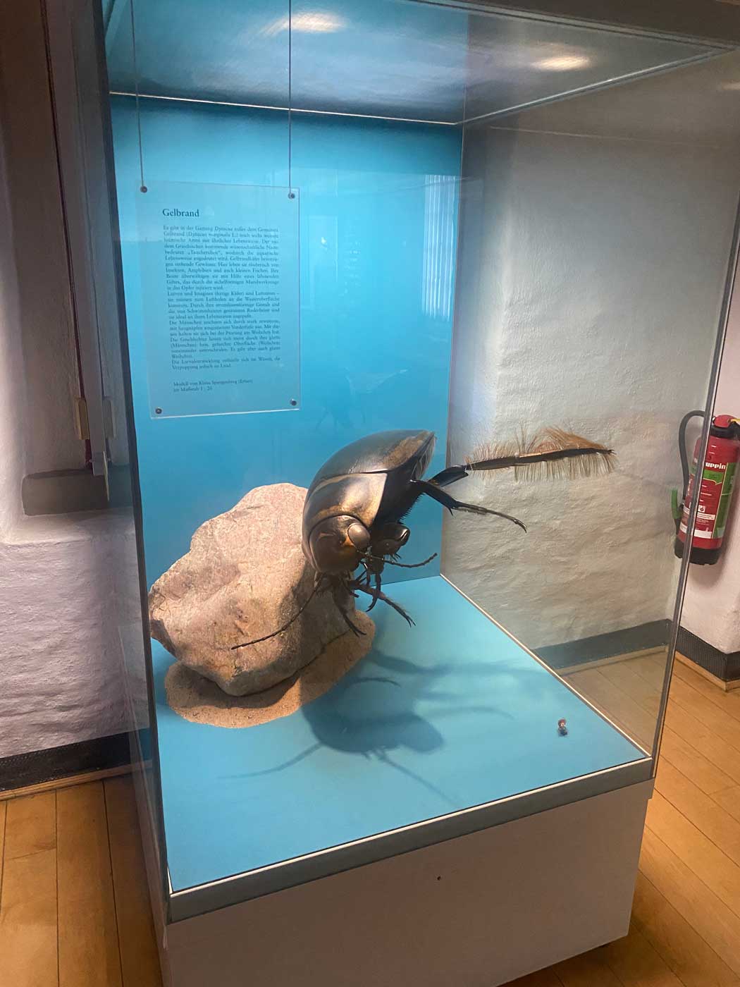 Zomaar een voorbeeld is de geelgerande watertor waarvan in het museum een schaalmodel van 20 : 1 te zien is. Deze kever kan een lengte van 3,5 centimeter bereiken en is hierbij in Nederland en België een van de grootste kevers die voorkomt.