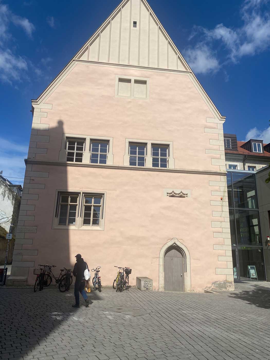 In de oude synagoge die gebouwd is rond 1100 bevindt zich sinds 2009 het Joodse museum. Hier zijn een groot aantal voorwerpen te zien uit de geschiedenis van de Joodse gemeenschap van Erfurt. Tot het jaar 1349 leefden Joden en Christenen hier vreedzaam samen. In 1349 brak in Europa de pest uit en hiervoor werden de Joden verantwoordelijk gehouden. Op 21 maart 1349 werd de Joodse wijk in Erfurt overvallen. Er vielen hierbij rond de 900 doden, vele gebouwen werden in brand gestoken en de totale Joodse gemeenschap hield toen op te bestaan. Vervolgens werd het gebouw voor allerlei andere doeleinden gebruikt om in het begin van de 21ste eeuw een museum te worden. Het maken van foto’s in het gebouw en op het terrein van de oude synagoge was helaas niet mogelijk. Daarom hier dus alleen een foto genomen vanaf de buitenkant.