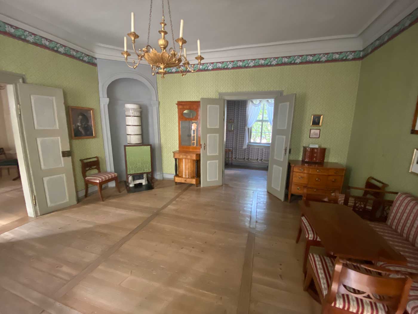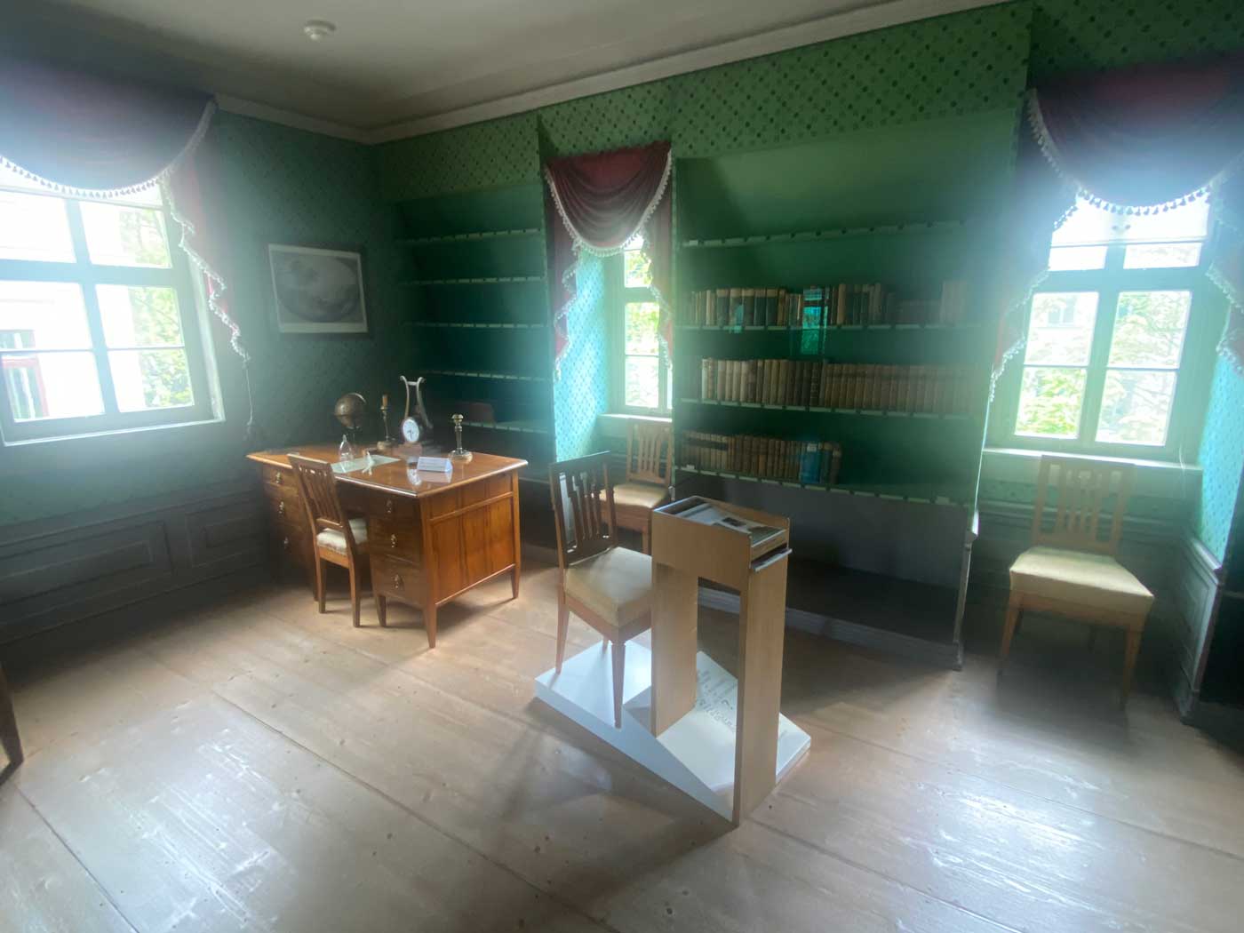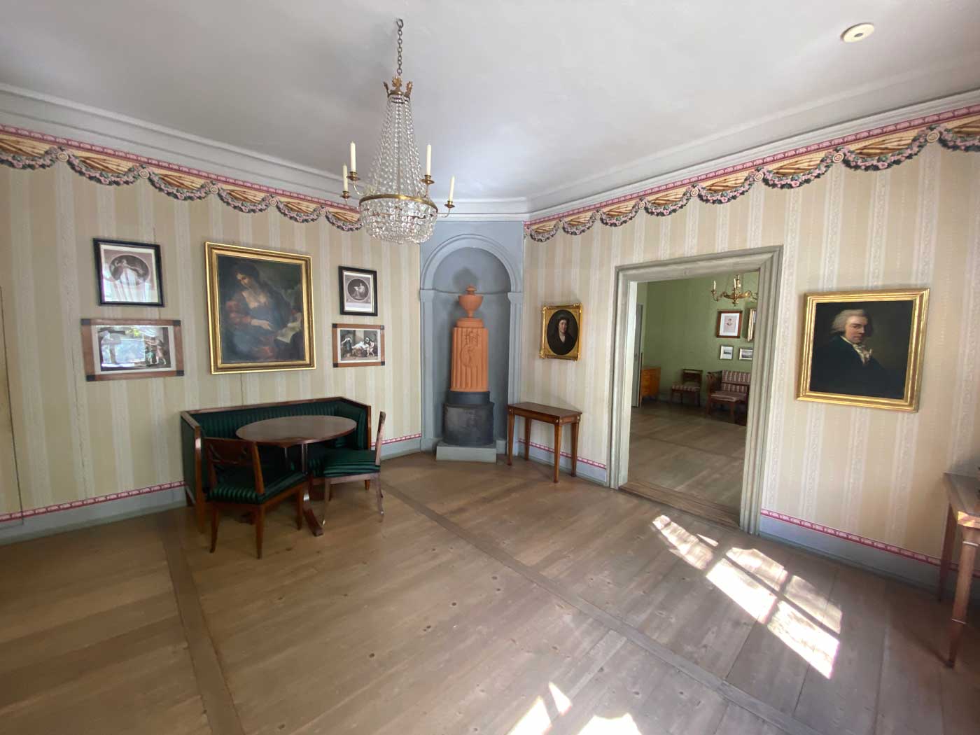 Op de tweede verdieping van het huis is de kamer waar Schiller hoogstwaarschijnlijk zijn gasten ontving.