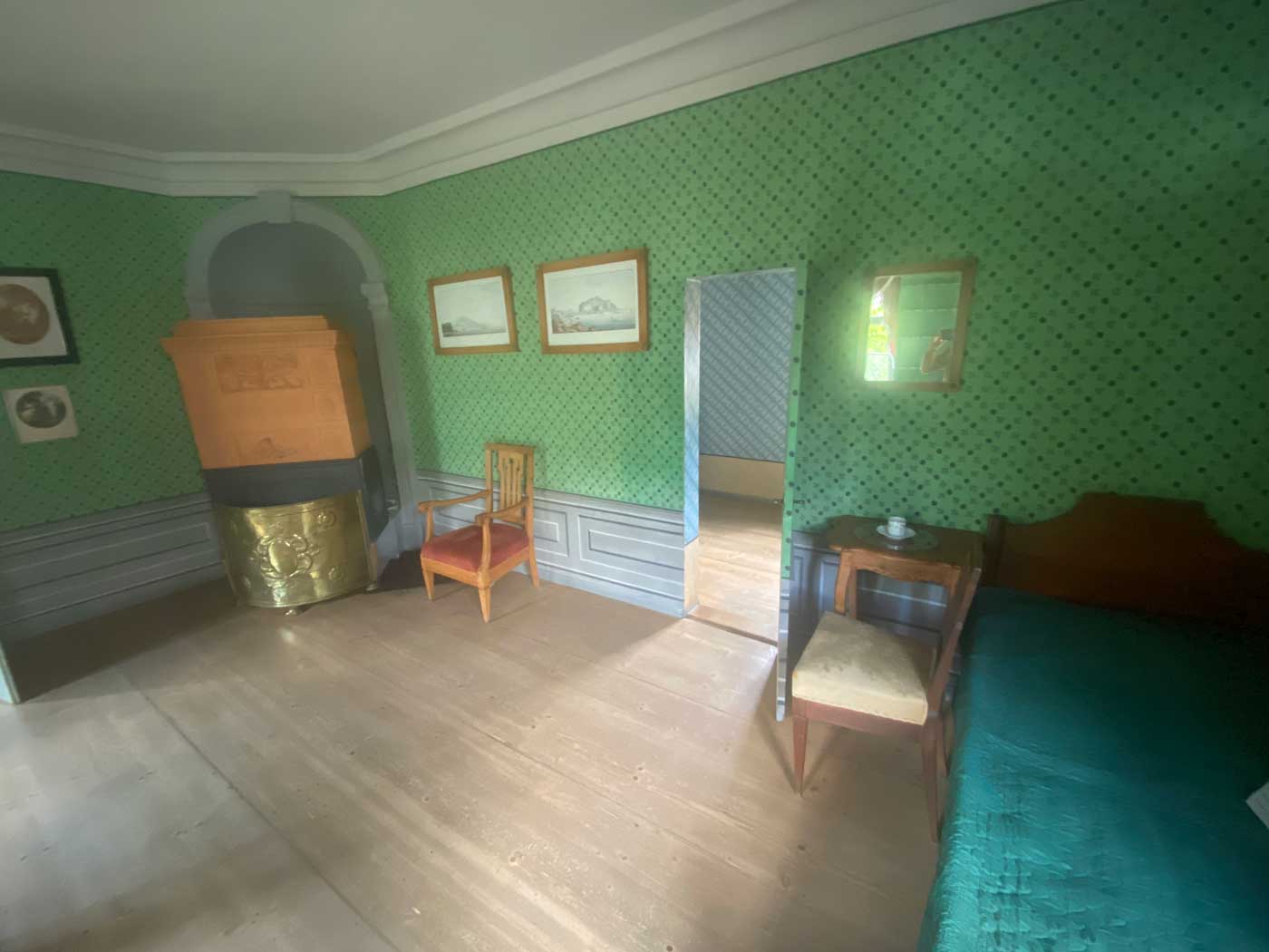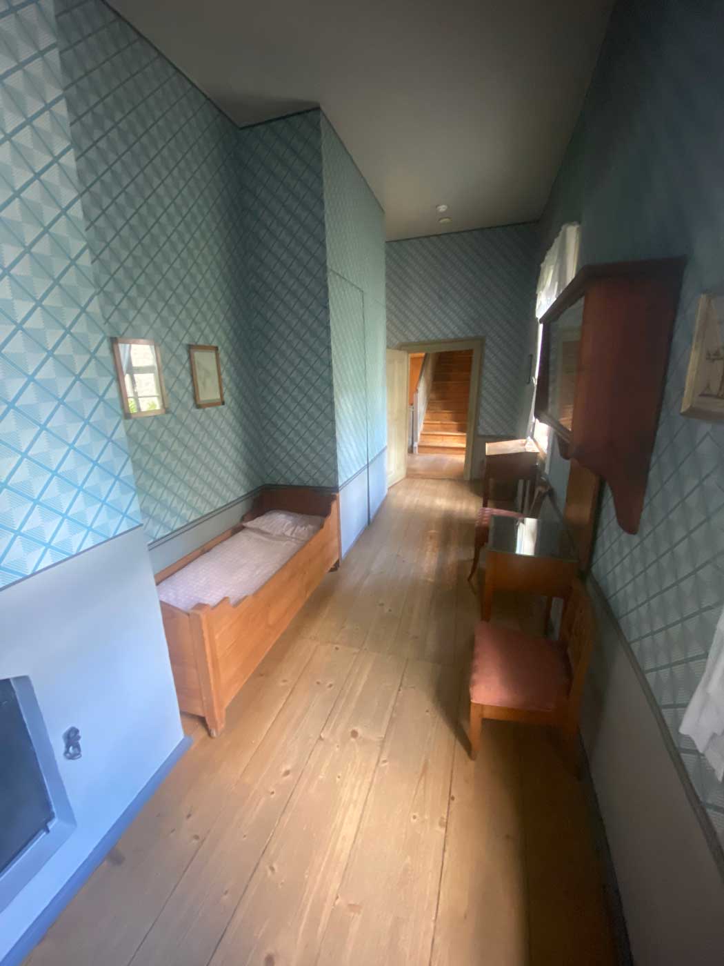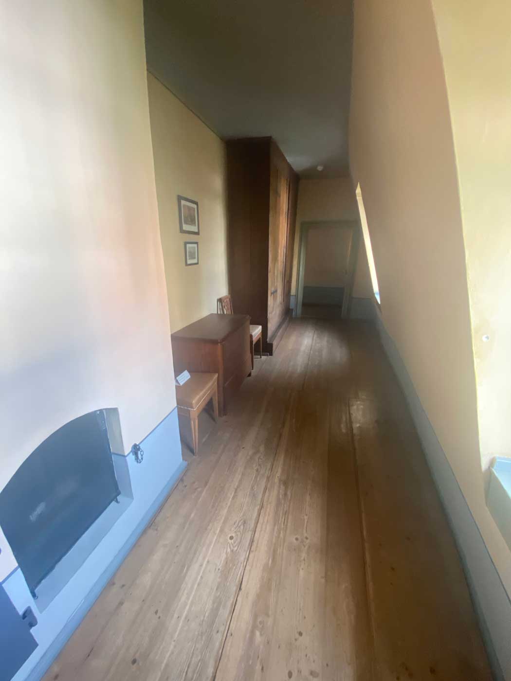 Als laatste kom je nog door twee kleine kamertjes heen. Eentje heeft waarschijnlijk als slaapkamer van Schiller dienstgedaan en is nu leeg. In de andere kamer staat nu alleen een grote kledingkast.