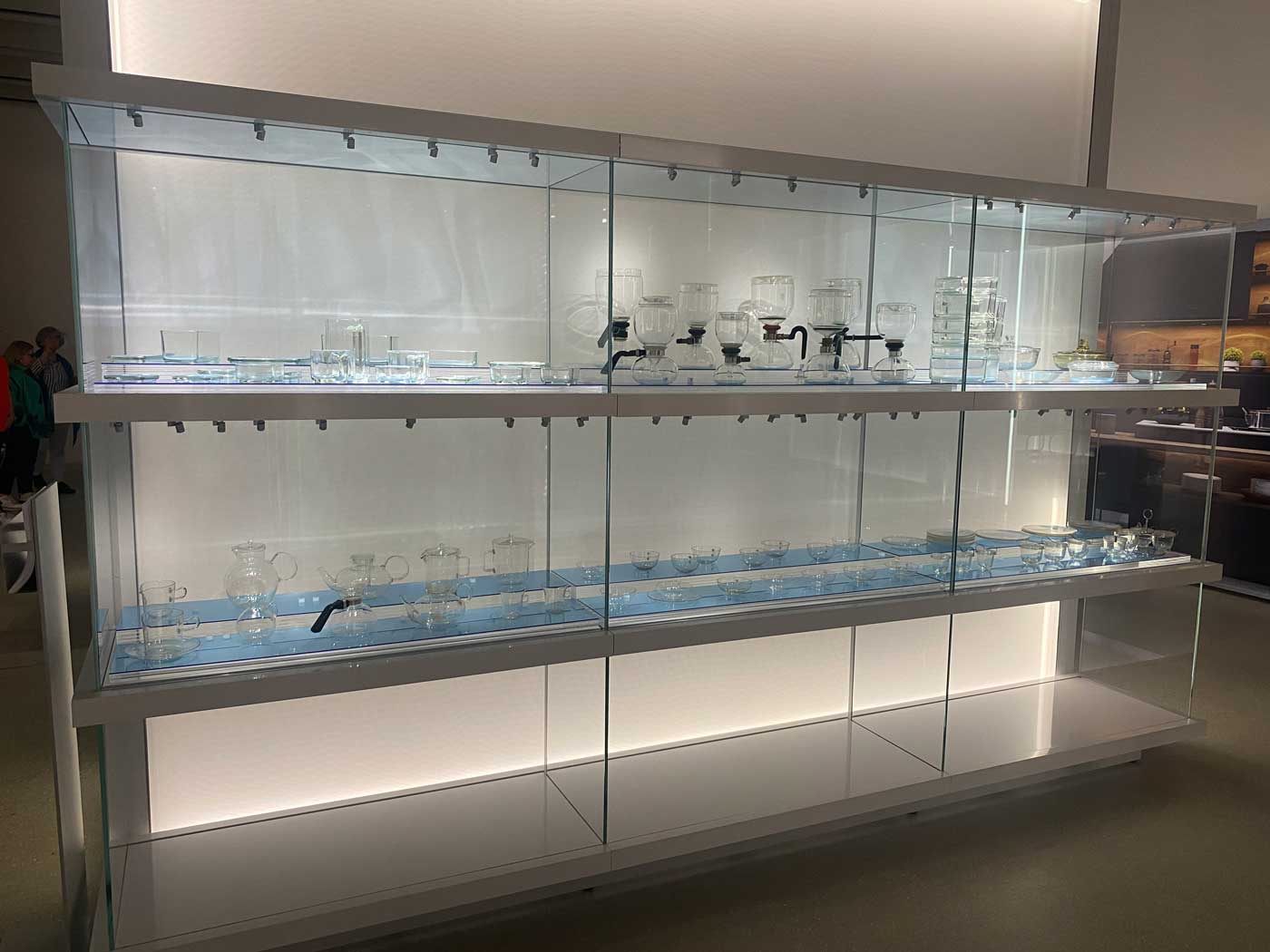 Het Bauhaus museum dat in 1995 is opgericht, is vanaf 2019 gevestigd in het huidige gebouw. Voor 2019 zat het museum in het gebouw dat nu het huis van de Weimarer Republik is. Meer daarover is in het reisverslag van gisteren te lezen. Het museum beschikt over een grote hoeveelheid originele voorwerpen uit de Bauhaus periode. In 2010 is er een verzameling aangekocht die naast Bauhaus werken ook uit een groot aantal eerdere werken bestaat, waarbij de functionaliteit in het ontwerp centraal heeft gestaan.