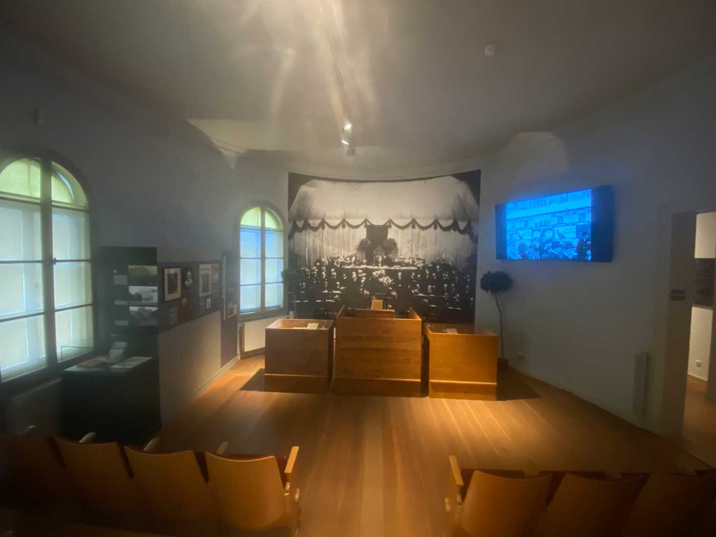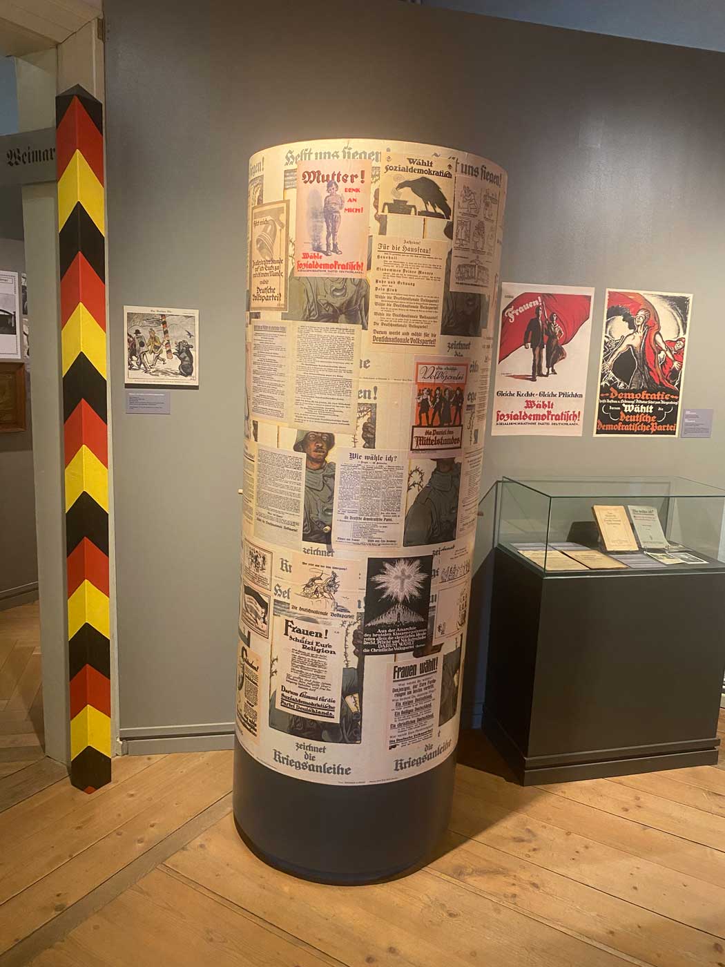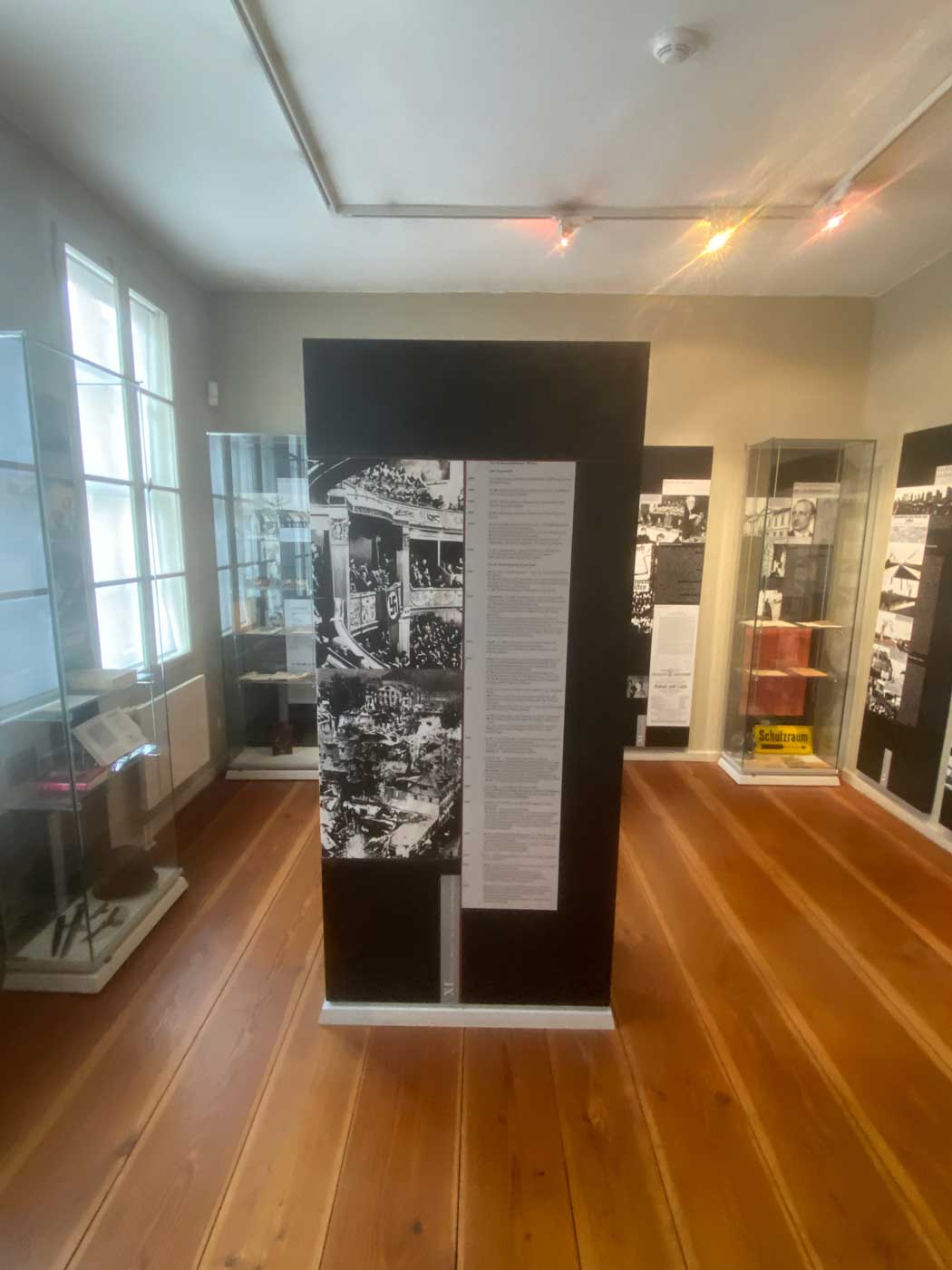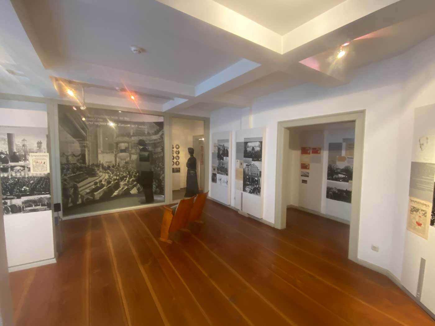 In een aparte ruimte zijn nog videobeelden uit deze tijd te zien. Op de foto is een vergadering van de sociaaldemocraten in het nationale theater te zien. De stoelen komen uit het voormalige huis van de Russische officieren uit Weimar. Het stadsmuseum is een echte aanrader om te bezoeken omdat het een zeer goed beeld geeft van de verschillende onderdelen van de geschiedenis van de stad Weimar.