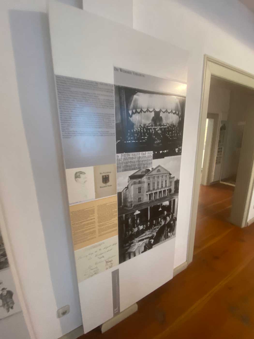 Een onderdeel van de permanente tentoonstelling in het stadsmuseum is natuurlijk de bijeenkomst die in 1919 in Weimar heeft plaatsgevonden over de grondwet van het nieuwe Duitsland. Op de volgende foto is een grote afbeelding te zien van een aantal aanwezigen in het theater in Weimar.