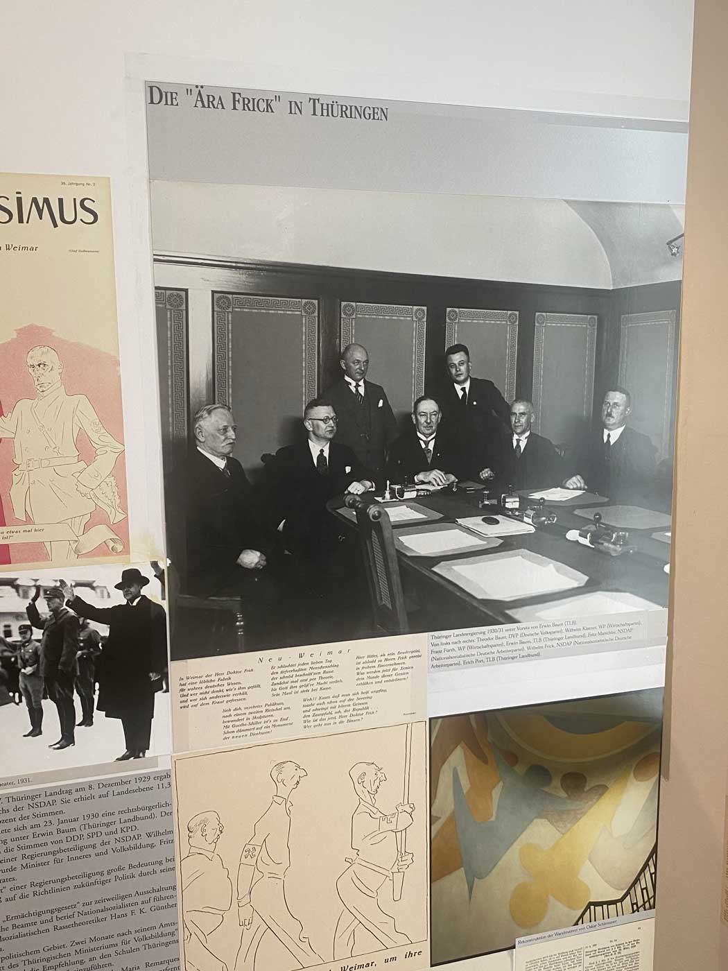 De volgende zaal gaat over Weimar in de periode tijdens het nationaalsocialisme. In 1935 ontstonden er plannen om in Weimar een aantal grote gebouwen voor de staat en de partij te bouwen. In totaal stonden er in Weimar een vijftal gebouwen in de planning. Drie waren voor het einde van de oorlog klaar. Een vierde gebouw is na de oorlog afgebouwd. Tegenwoordig is één van deze gebouwen als winkelcentrum in gebruikt. De andere drie worden door de overheid van de deelstaat gebruikt.