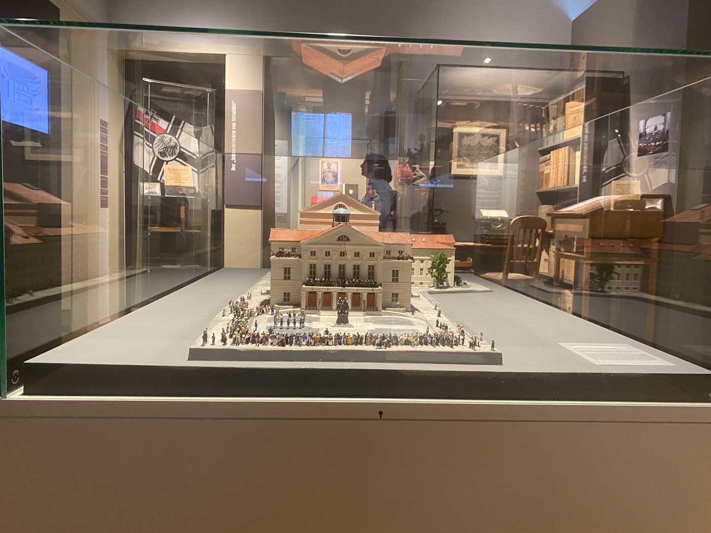 Het model op de volgende foto laat het nationale theater zien op 21 augustus 1919 na de beëdiging van Friedrich Ebert als rijkspresident.