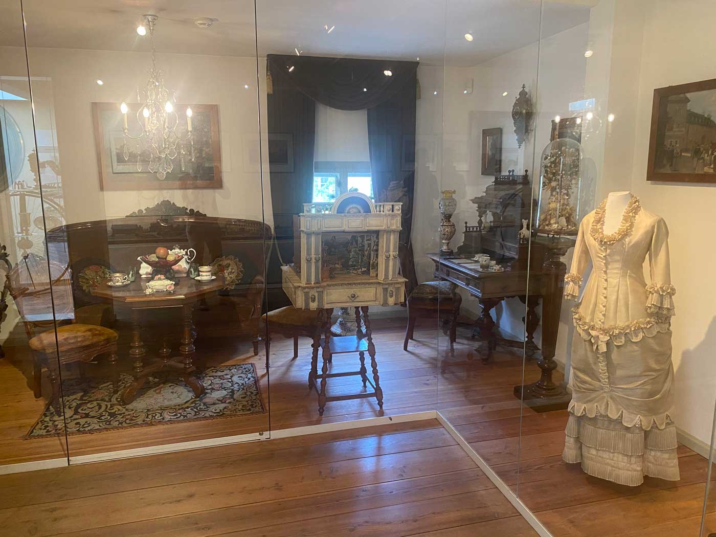 De volgende foto laat de inrichting van een kamer zien uit 1880 uit een huis van de betere burgerij. .