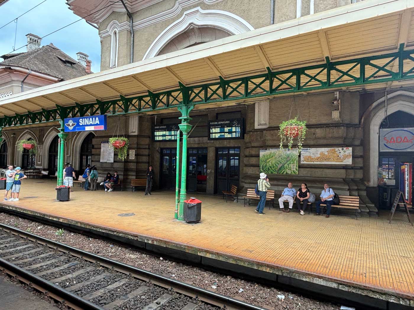 Sinaia is een plaats met ongeveer 9.000 inwoners. Vanwege zijn ligging langs de spoorlijn Brasov – Boekarest stoppen er toch elke dag een flink aantal treinen. Het station ziet er in tegenstelling tot dat van Brasov een stuk netter uit. Zo hangen bij de verschillende sporen elektronische borden die aangeven welke trein er aankomt. Iets wat in het veel grotere station van Brasov bijvoorbeeld niet het geval is.