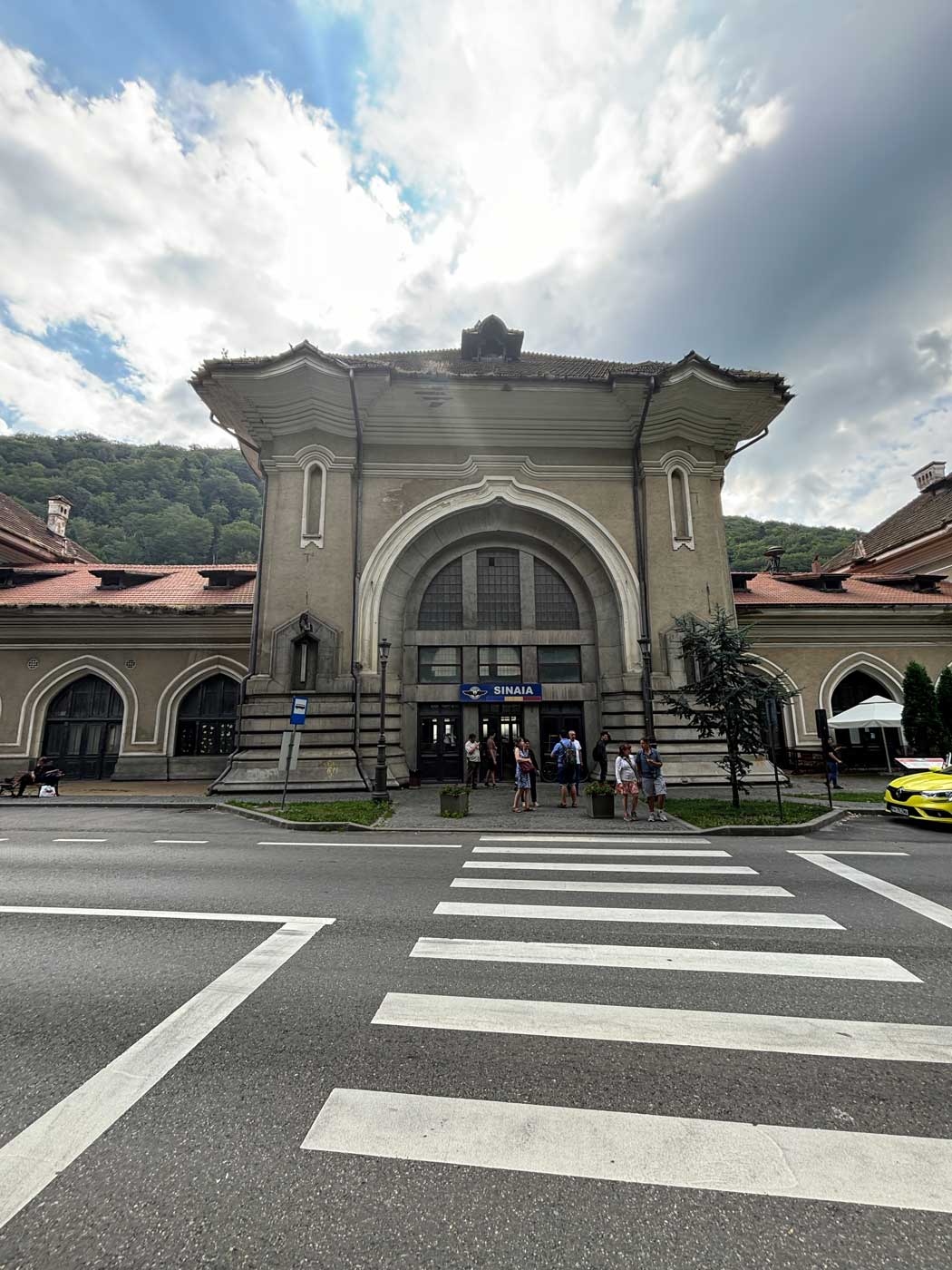 De spoorlijn ligt in een soort vallei. Om richting de stad Sinaia te gaan, moet je vanaf het spoor meteen bergop gaan lopen. Aan de foto’s is te zien dat het weer op deze dag behoorlijk was omgeslagen. Het was flink bewolkt en de temperaturen zakten tot rond de 20 graden. Daarmee was het echt een frisse dag waarop je eigenlijk gewoon een trui aan kon trekken. Zeker na de extreem hoge temperaturen in Boekarest.