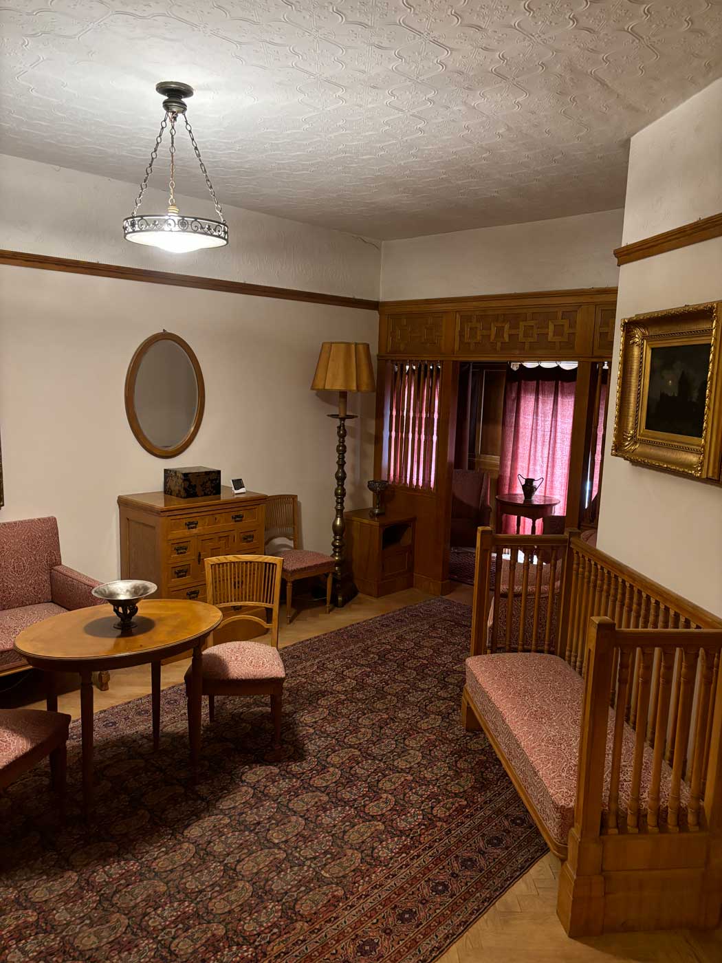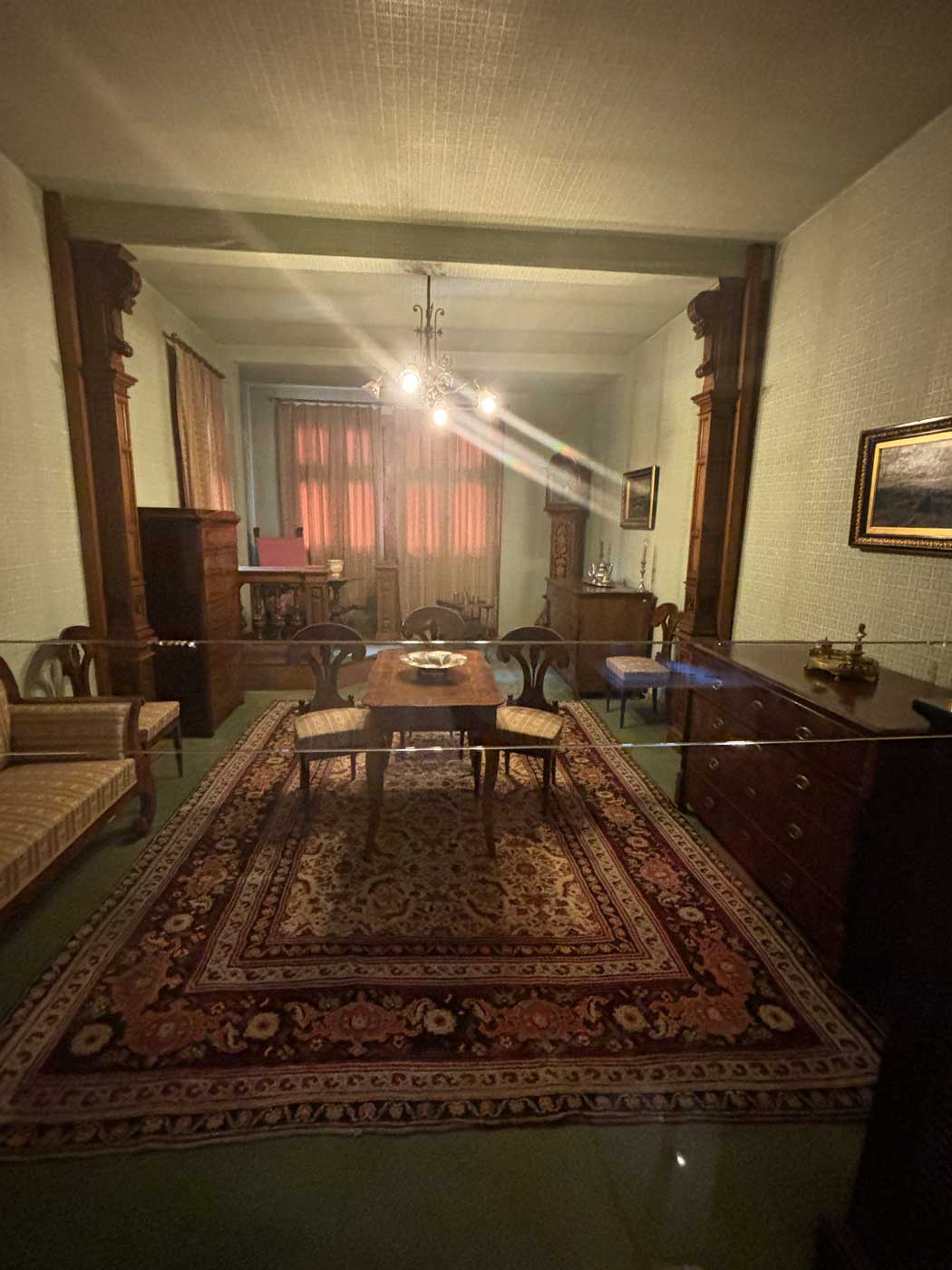 In een ruimte waarvan verder niet wordt aangegeven waarvoor hij gebruikt werd, staan een aantal meubels uit het einde van de 19de eeuw gemaakt in Biedermaier stijl.