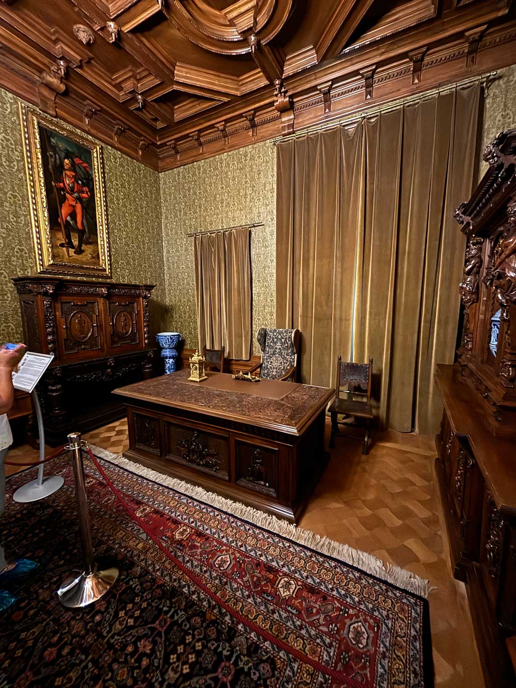 Het Peles kasteel is vanzelfsprekend de belangrijkste bezienswaardigheid van Sinaia. Naast dit kasteel staat het kleinere Pelisor kasteel. Dat komt in het volgende deel van dit reisverslag terug. Aan het einde van de tweede route door het kasteel kom je in het gedeelte waar zich vroeger het koninklijke appartement bevond.